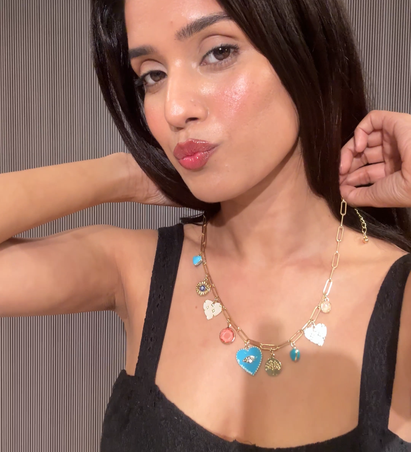 Silver Plated Four Tier Charm Pendant Necklace with Adjustable Chain