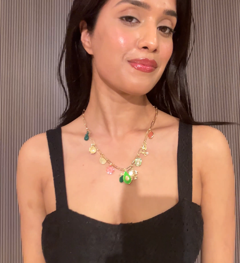 Gold Plated Multi Colour Pendants Chain Necklace with CZ Stones