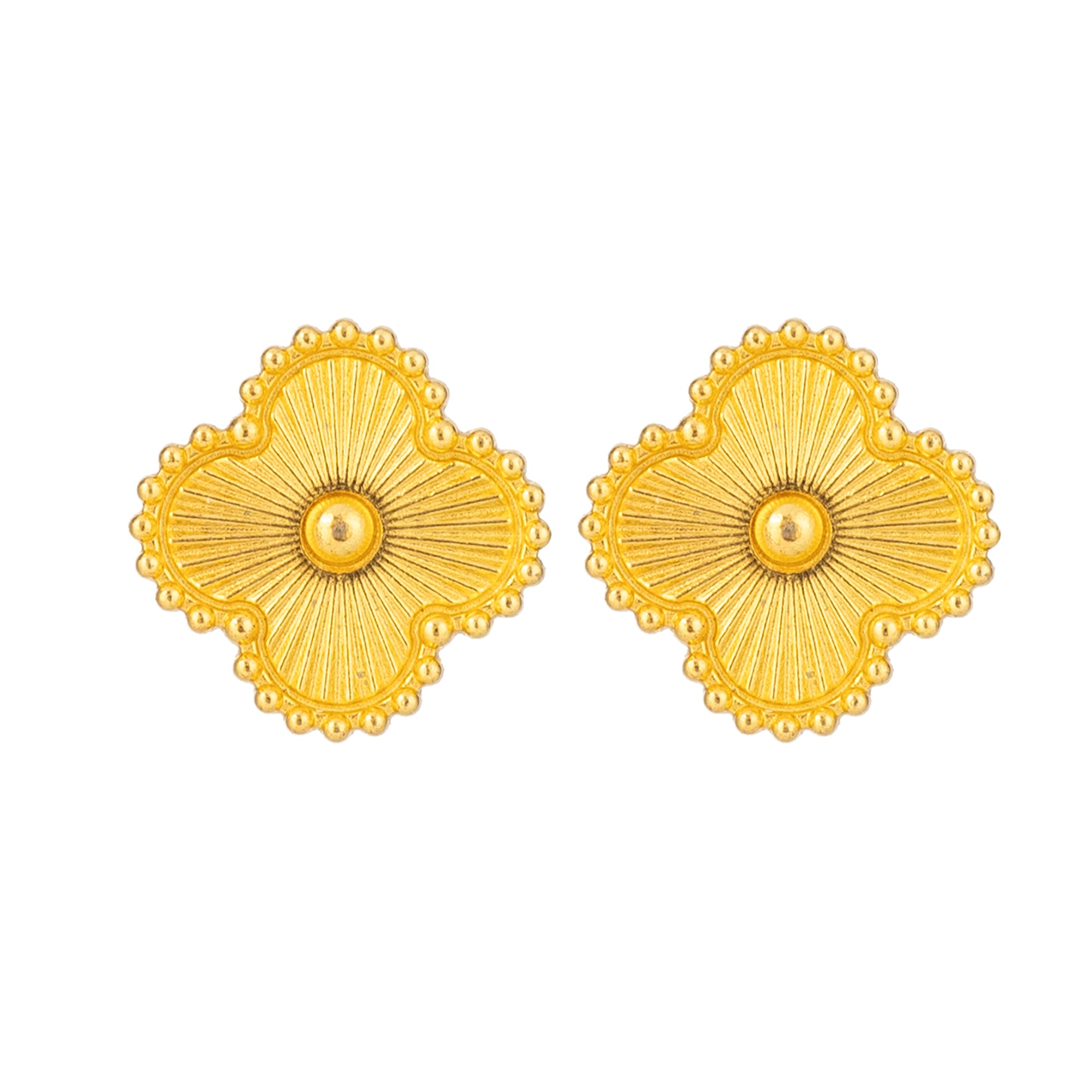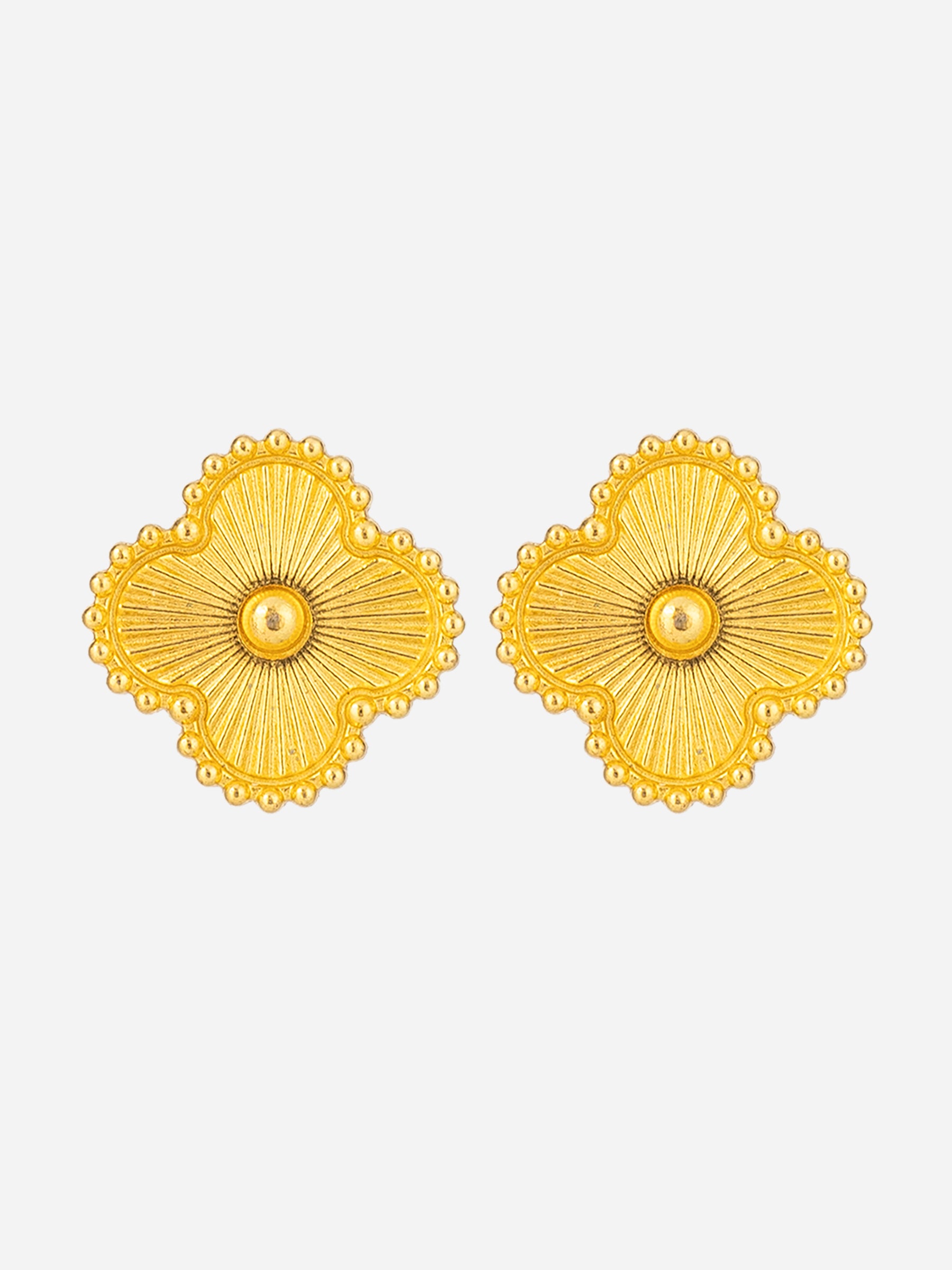 Clover Gold Plated Necklace, Ring, Bracelet and Earring Set for Women