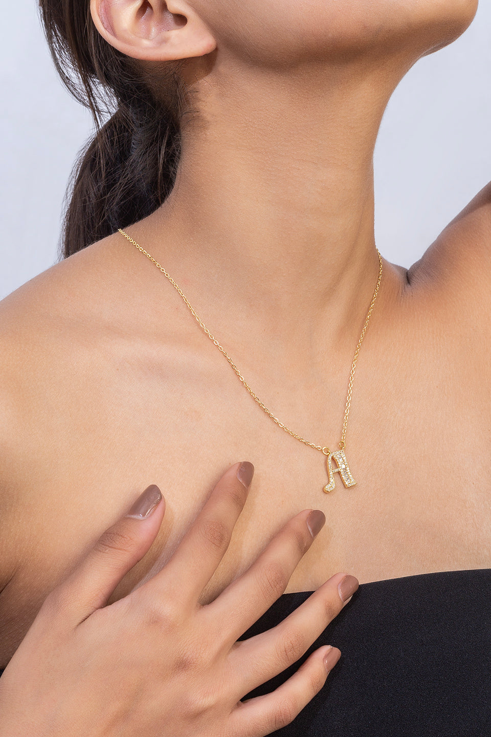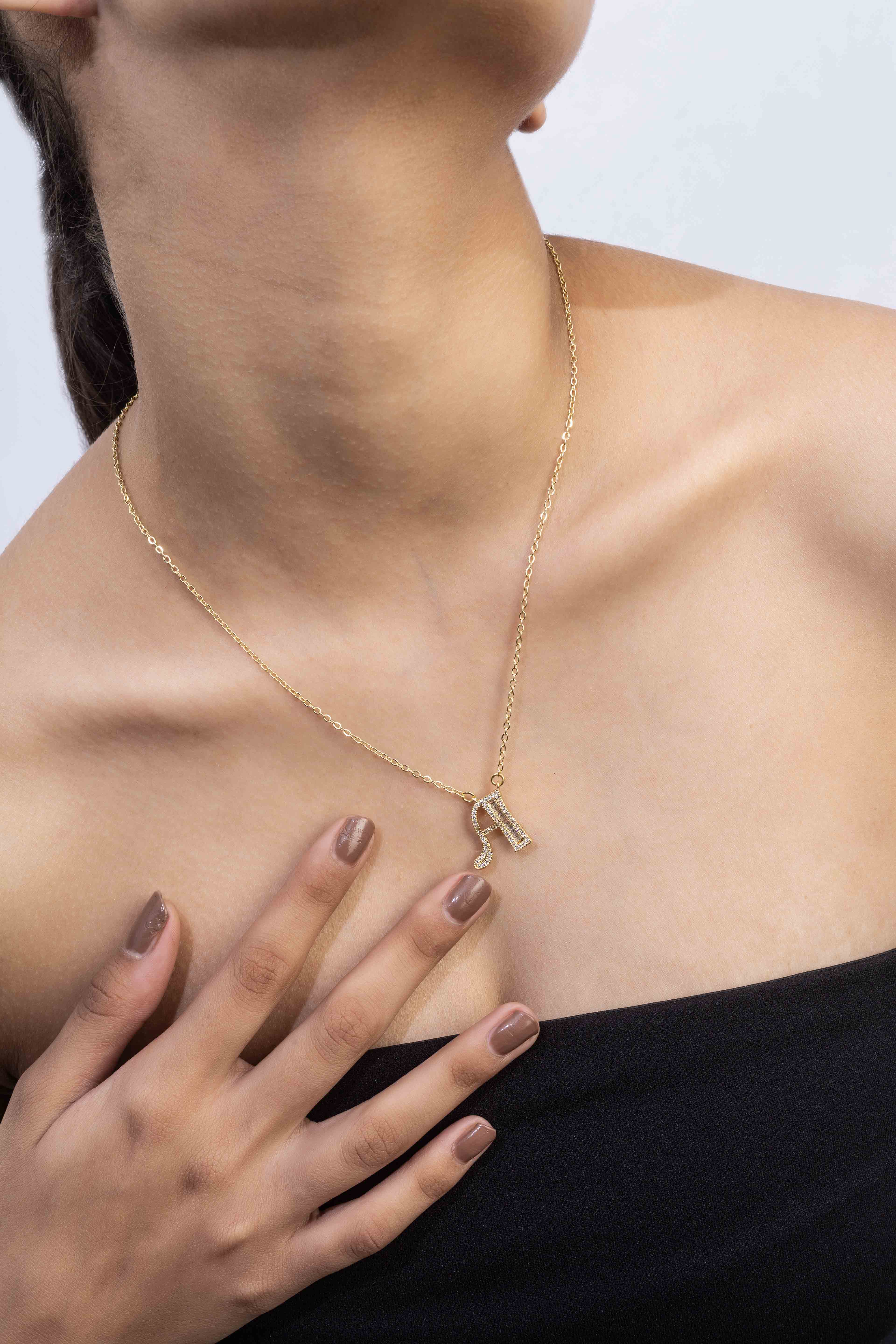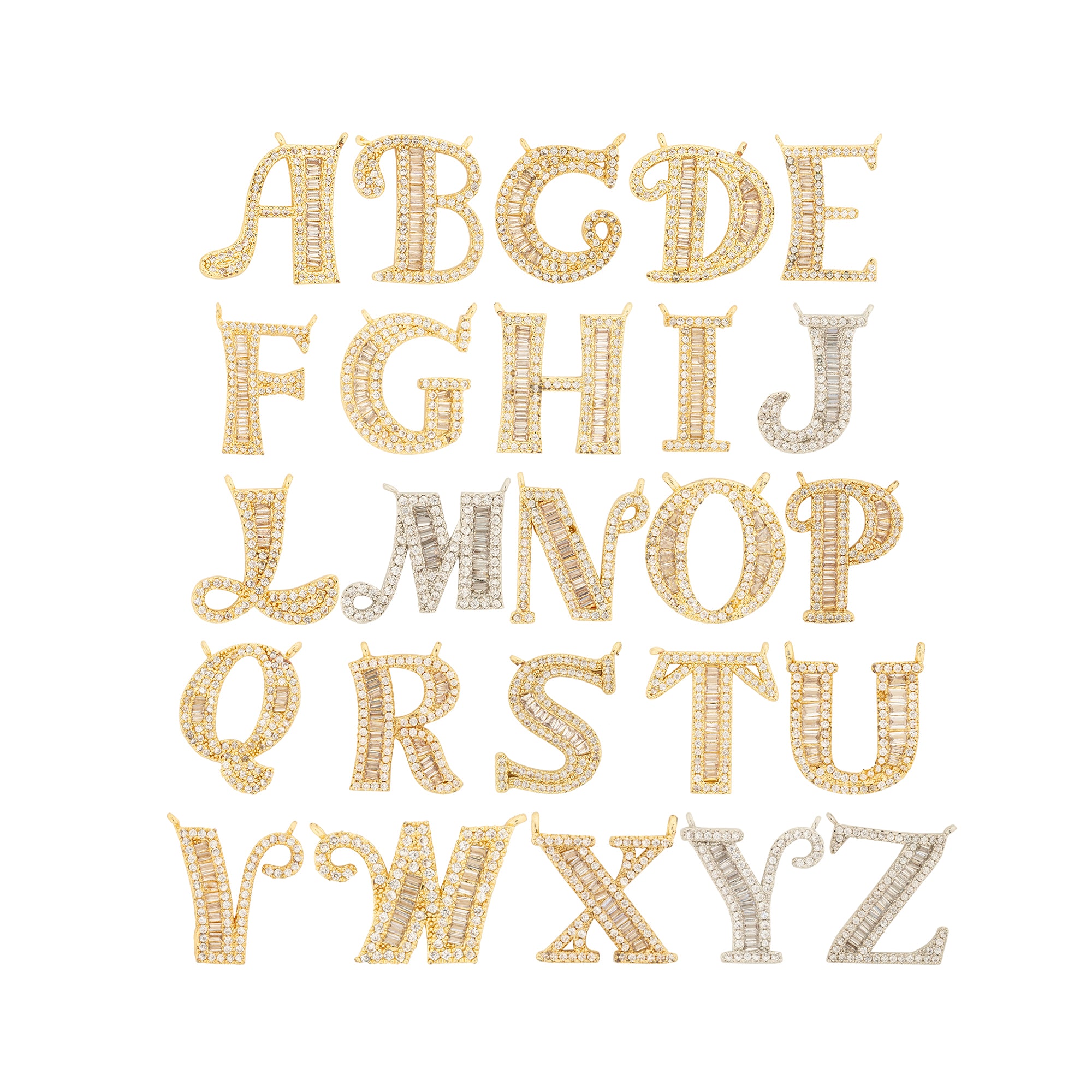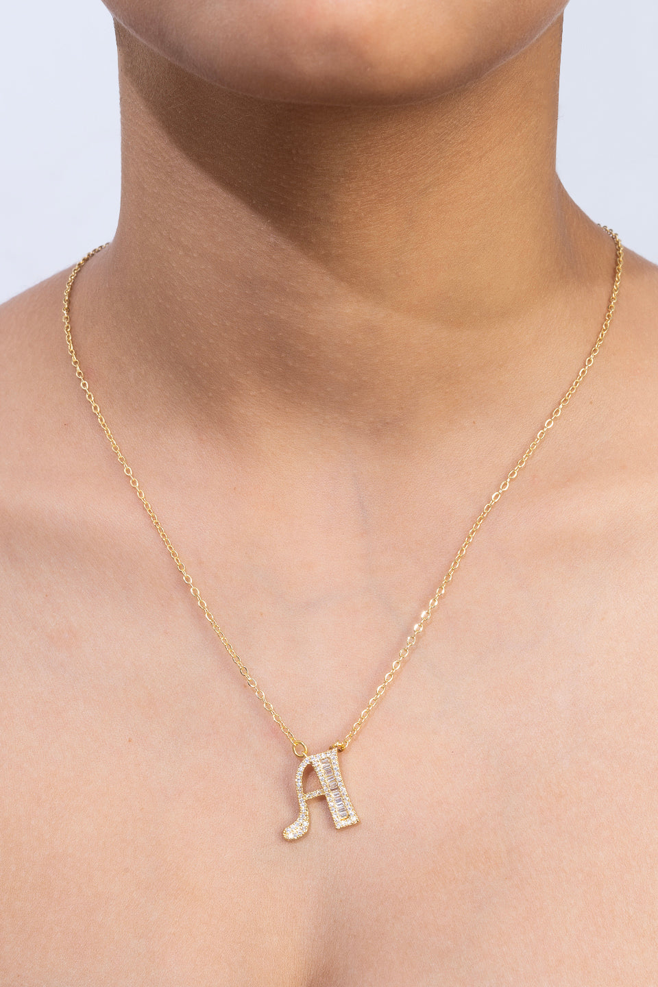 Gold Plated A Letter Pendants with CZ Stone