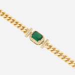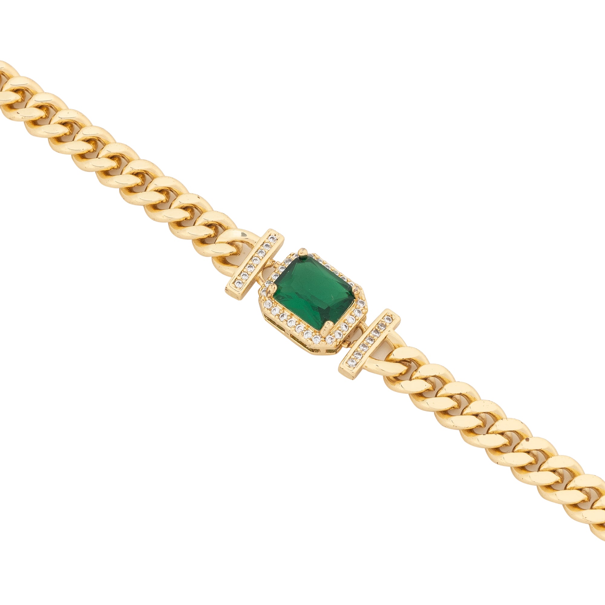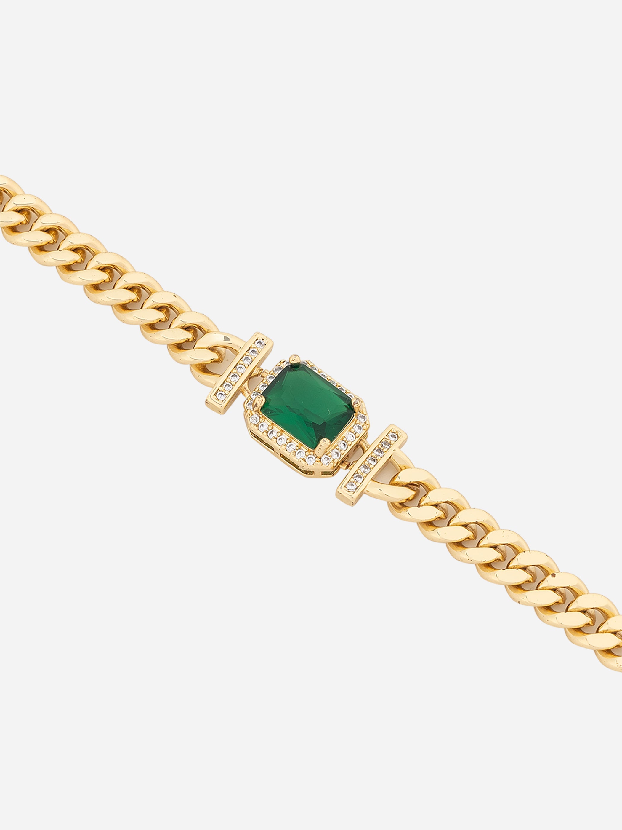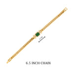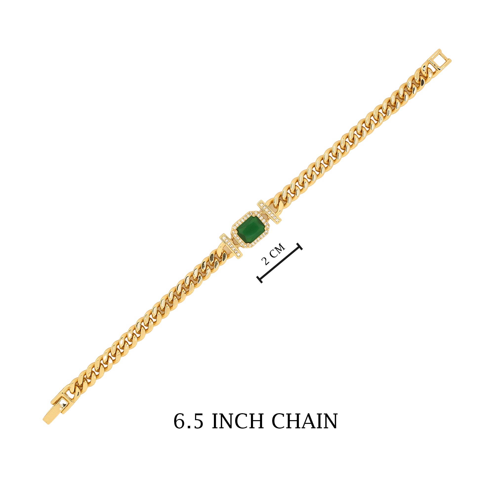 Gold Plated Green Charm Link Bracelet with CZ Stone