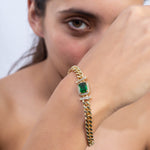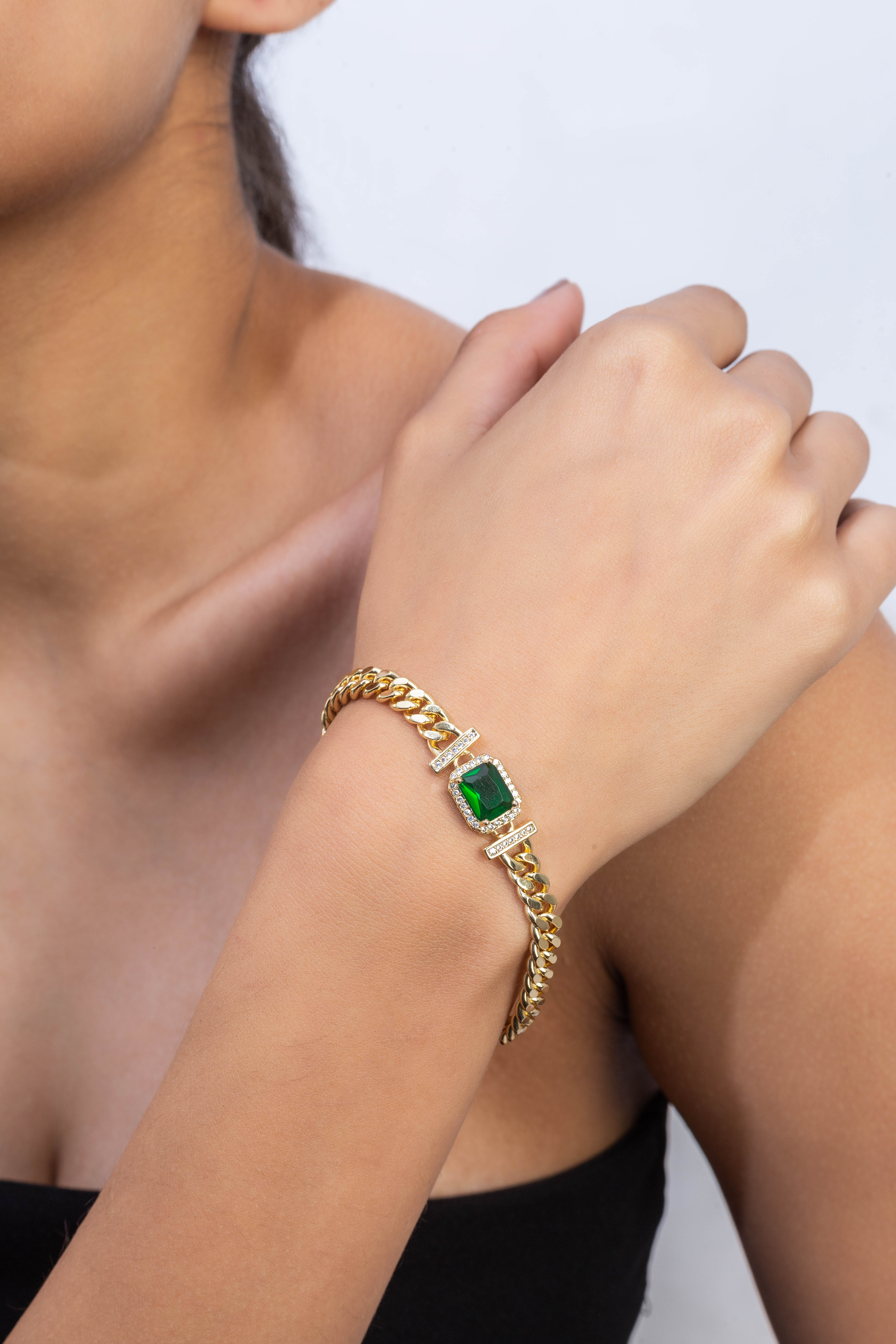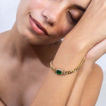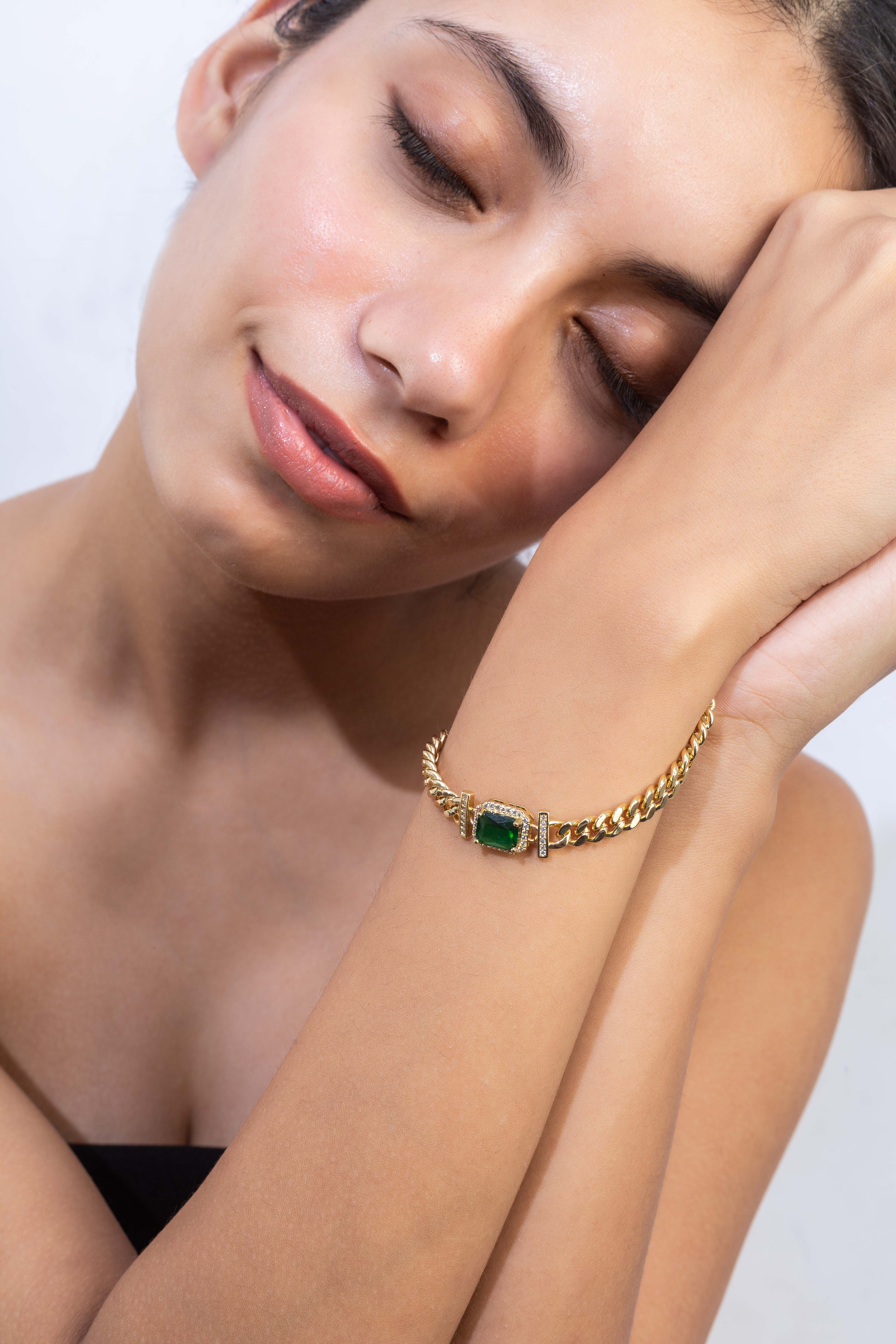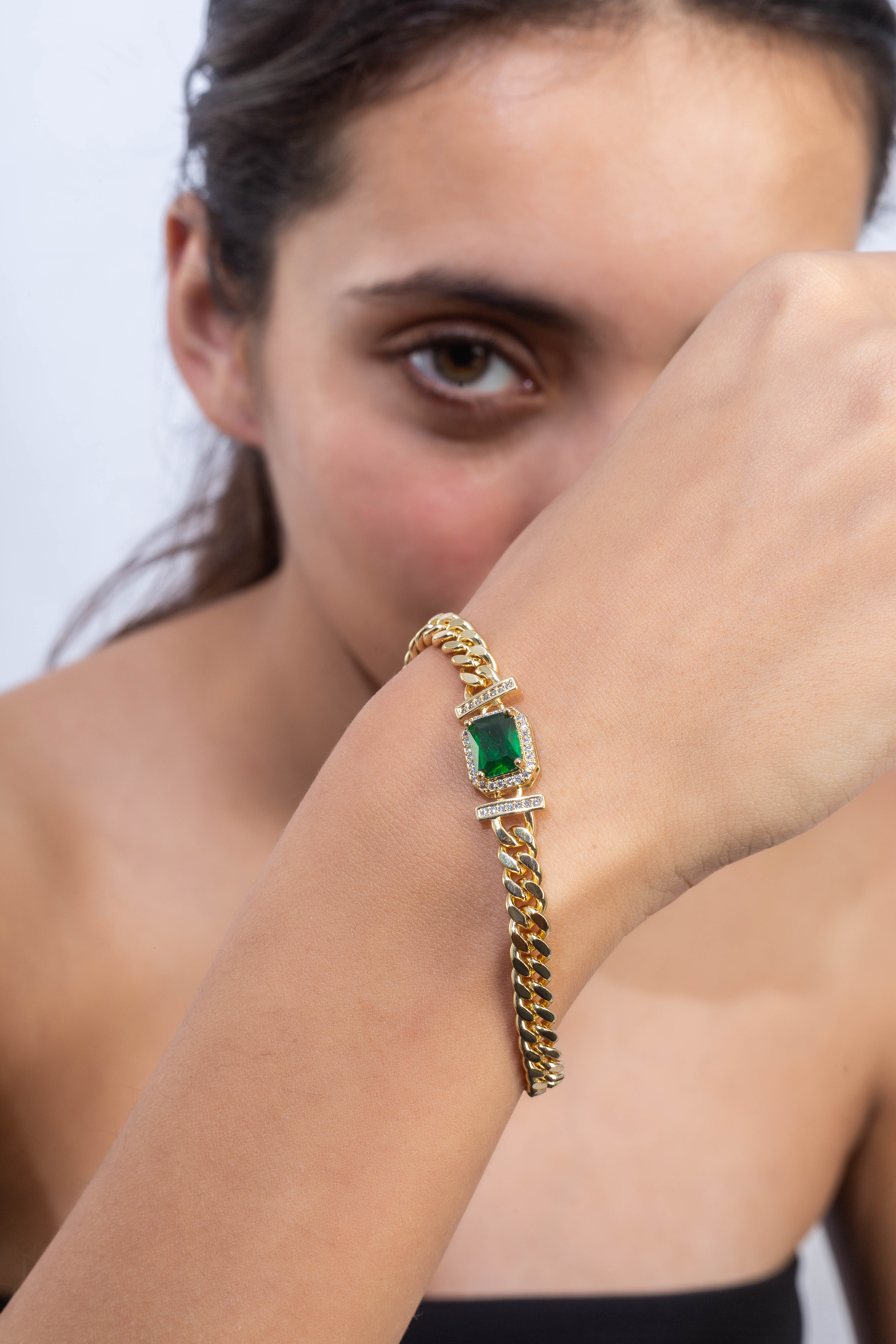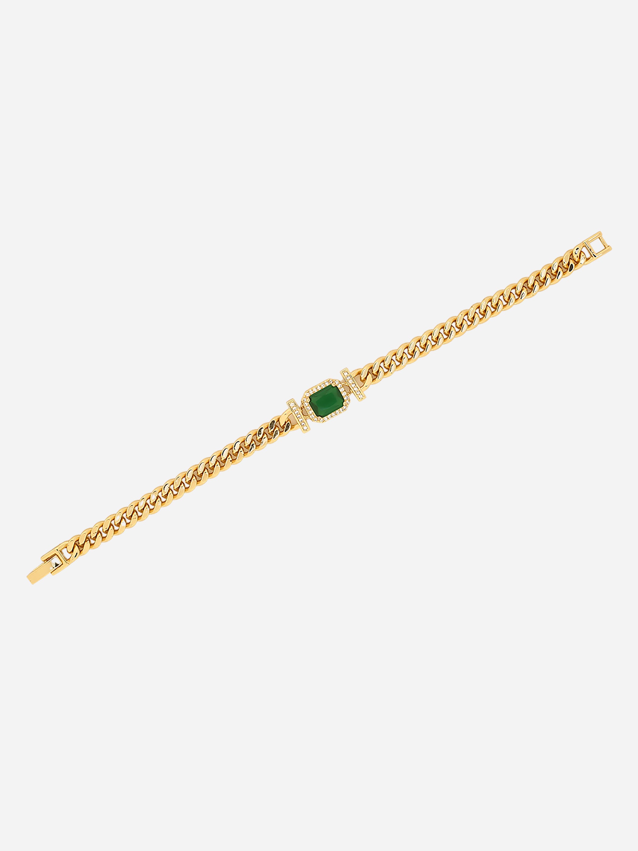 Gold Plated Green Charm Link Bracelet with CZ Stone