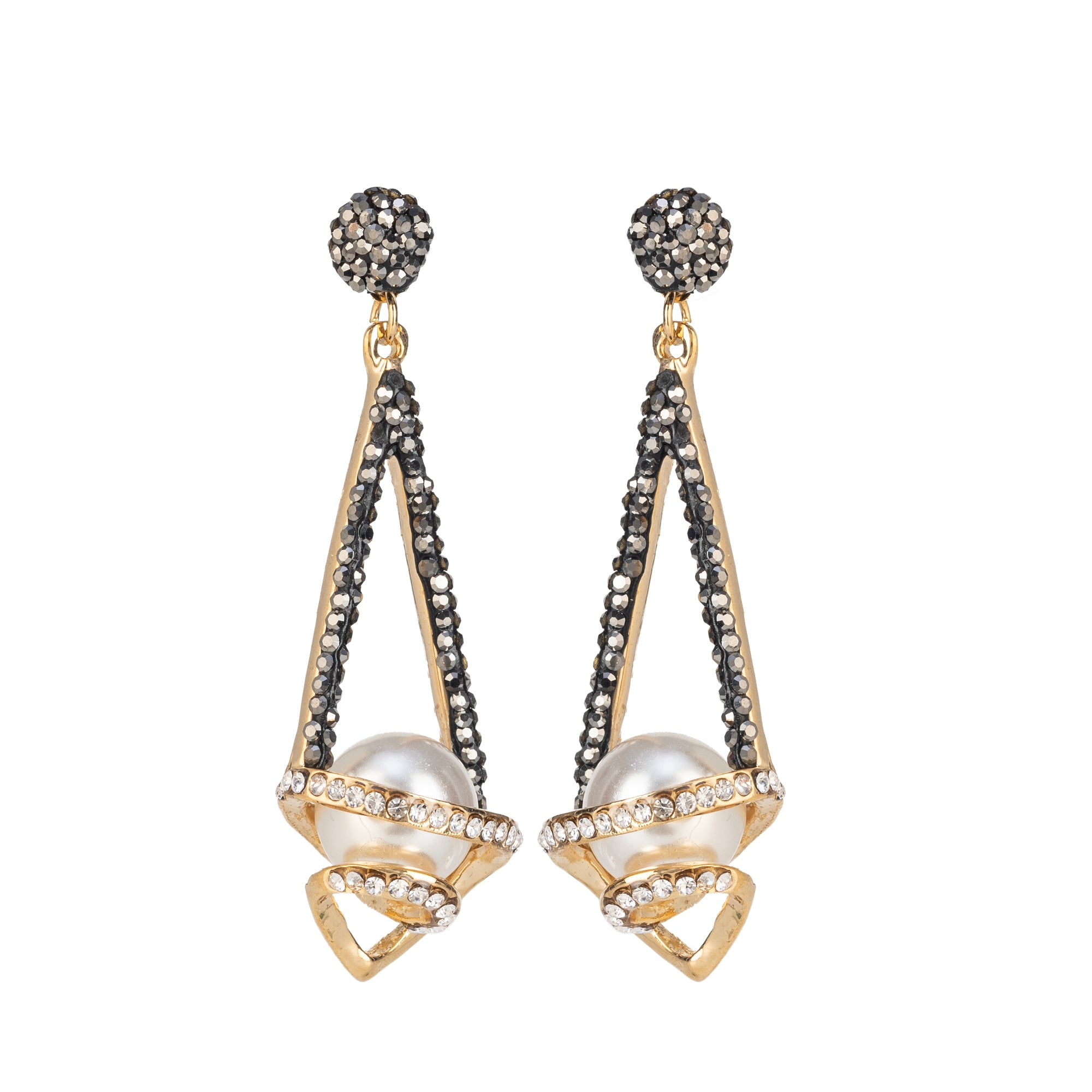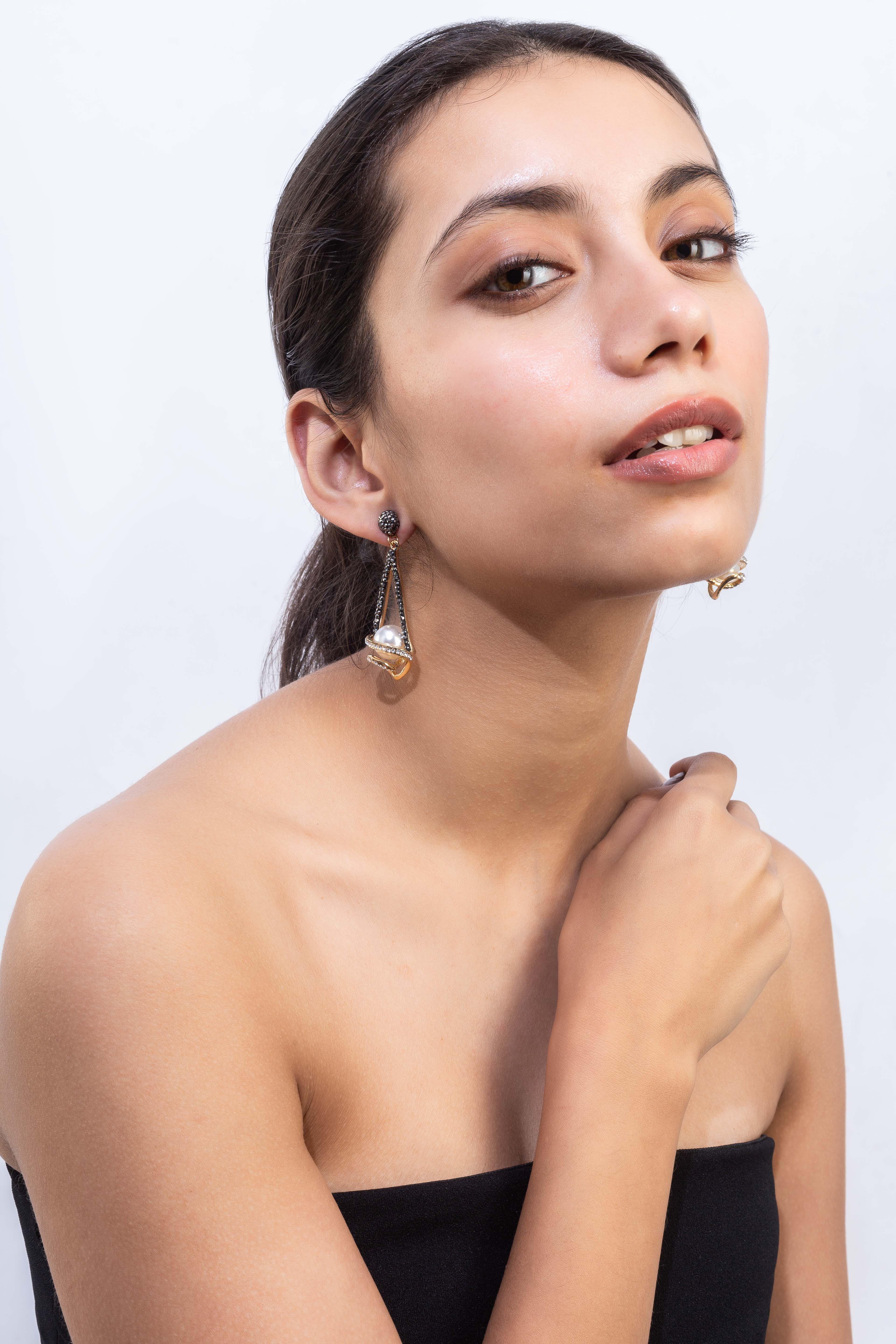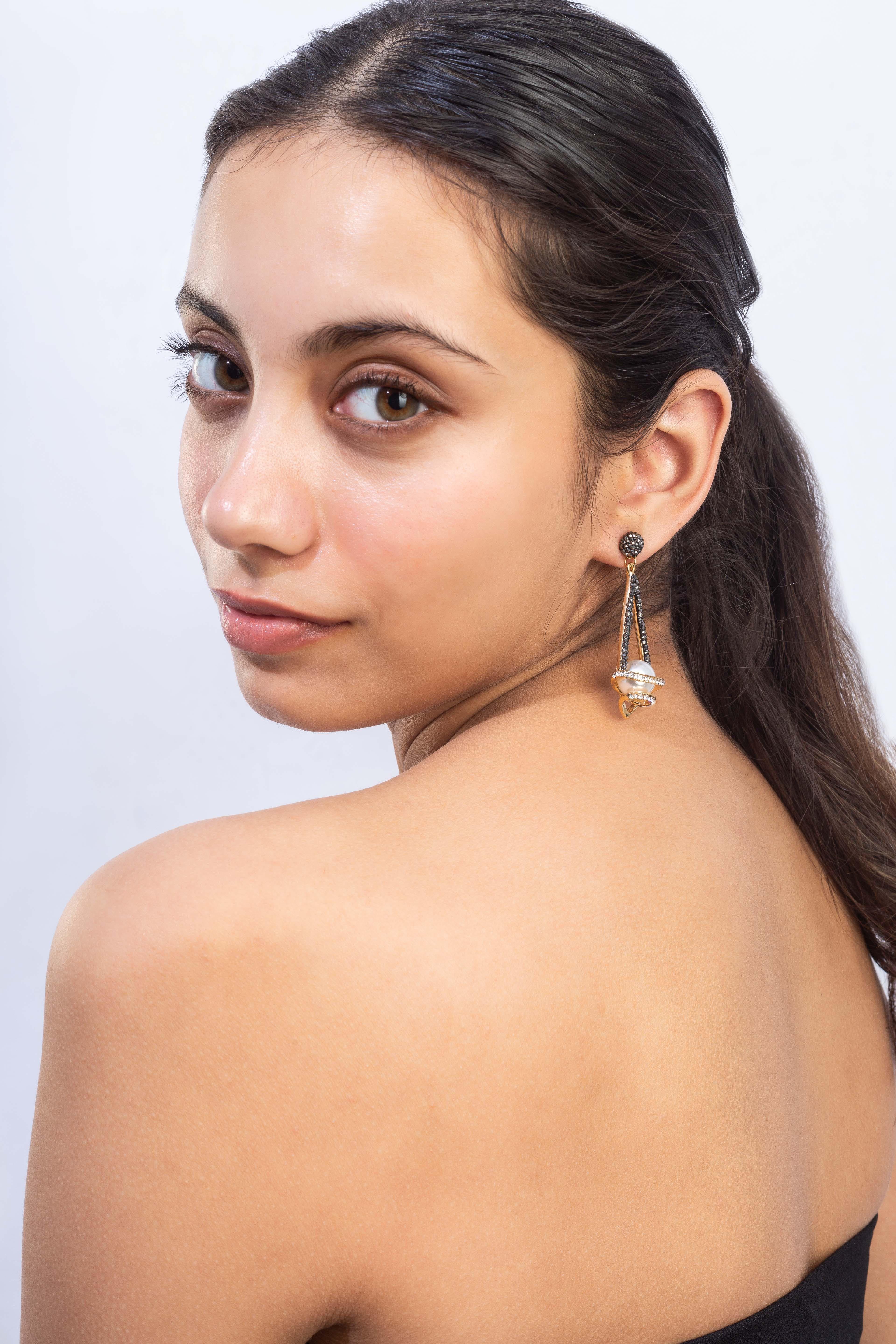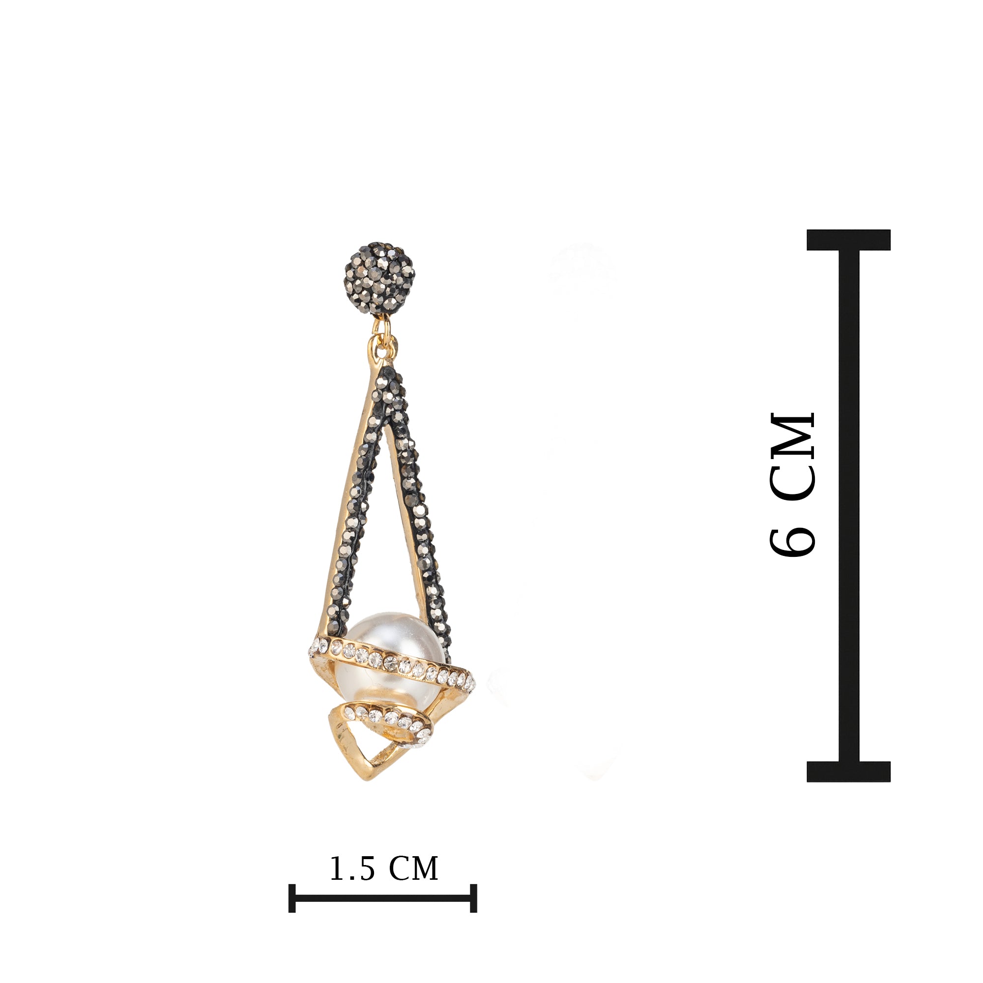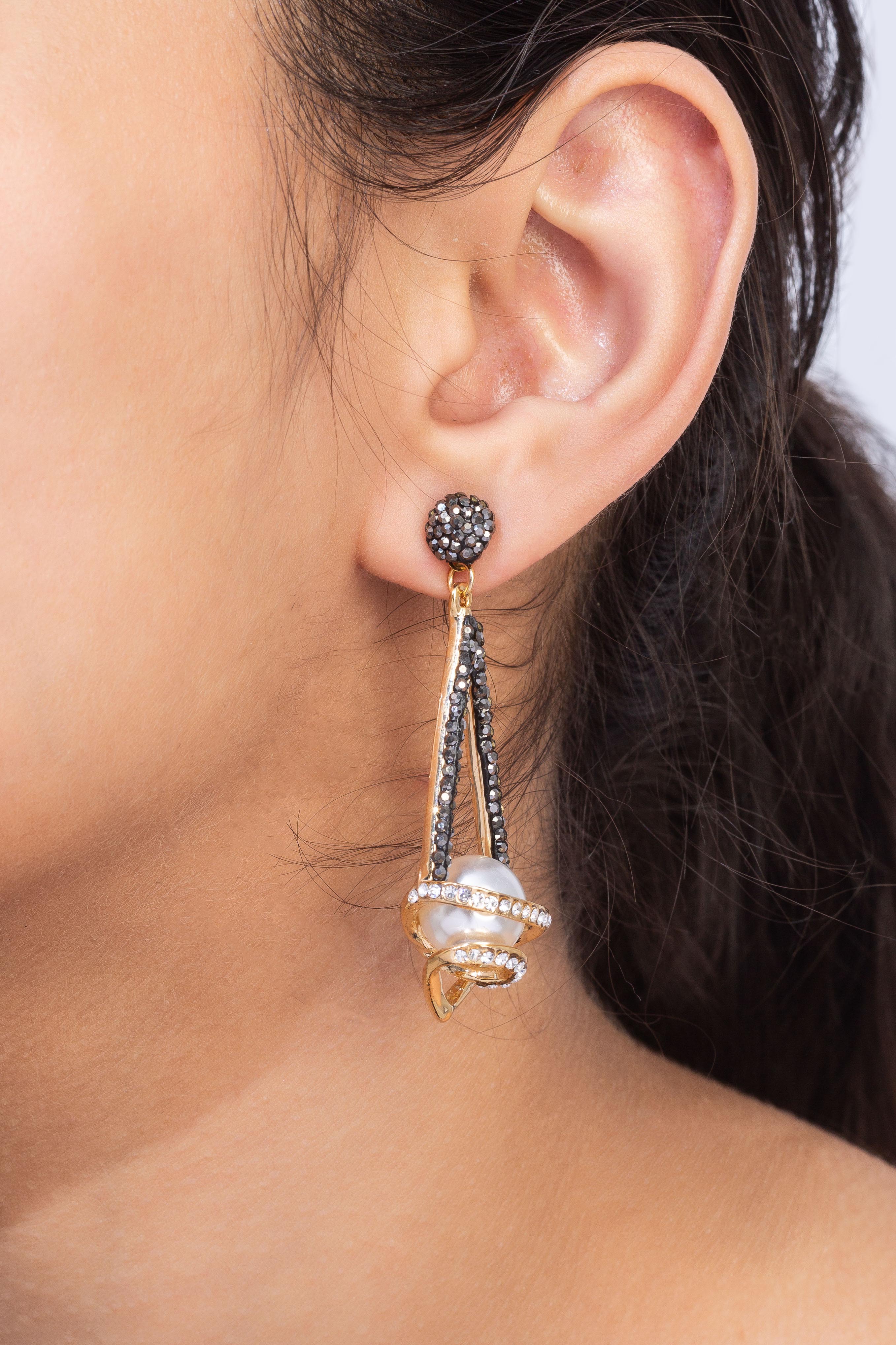 Gold Plated Long Earrings for Women with Mother of Pearl & CZ Stones
