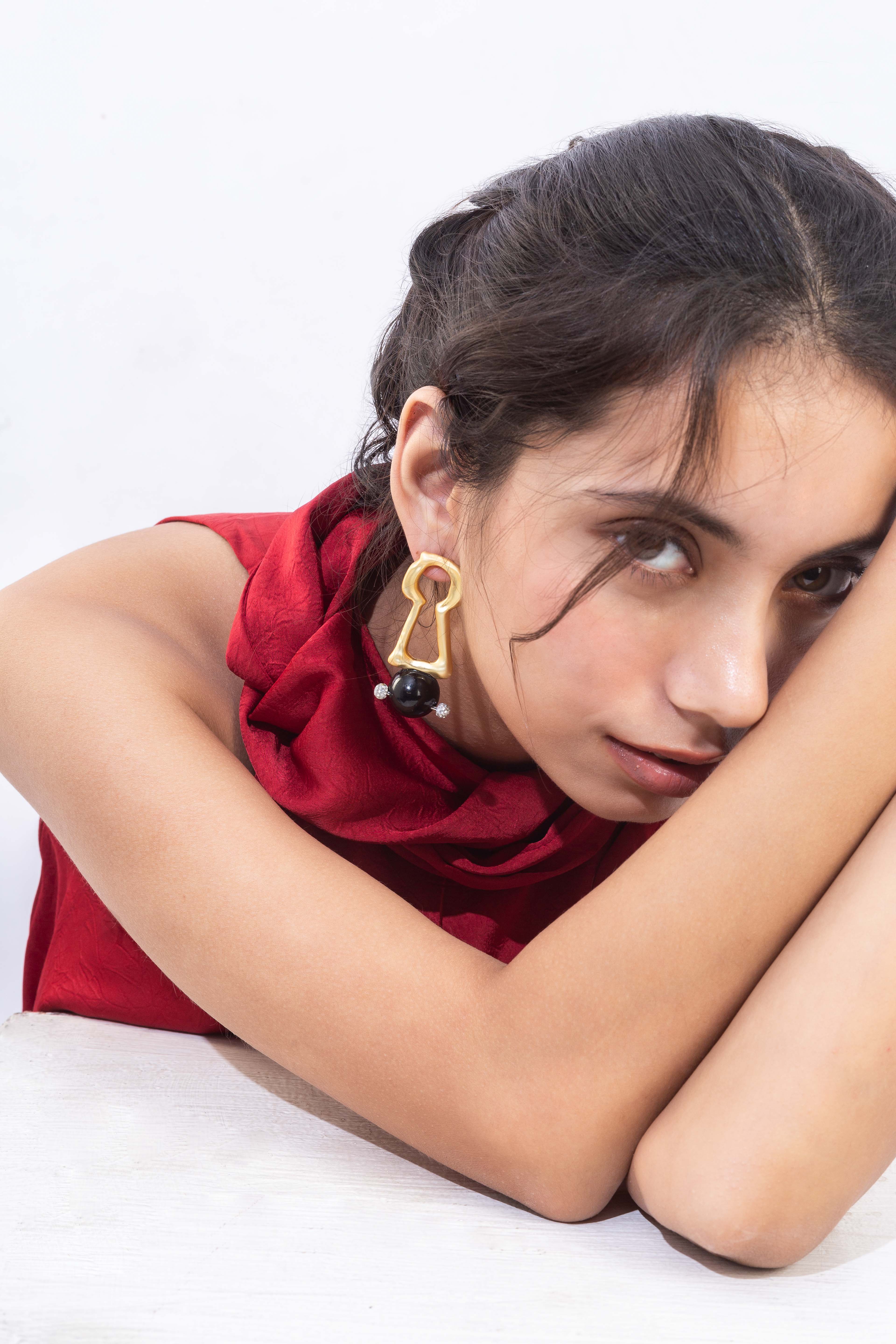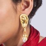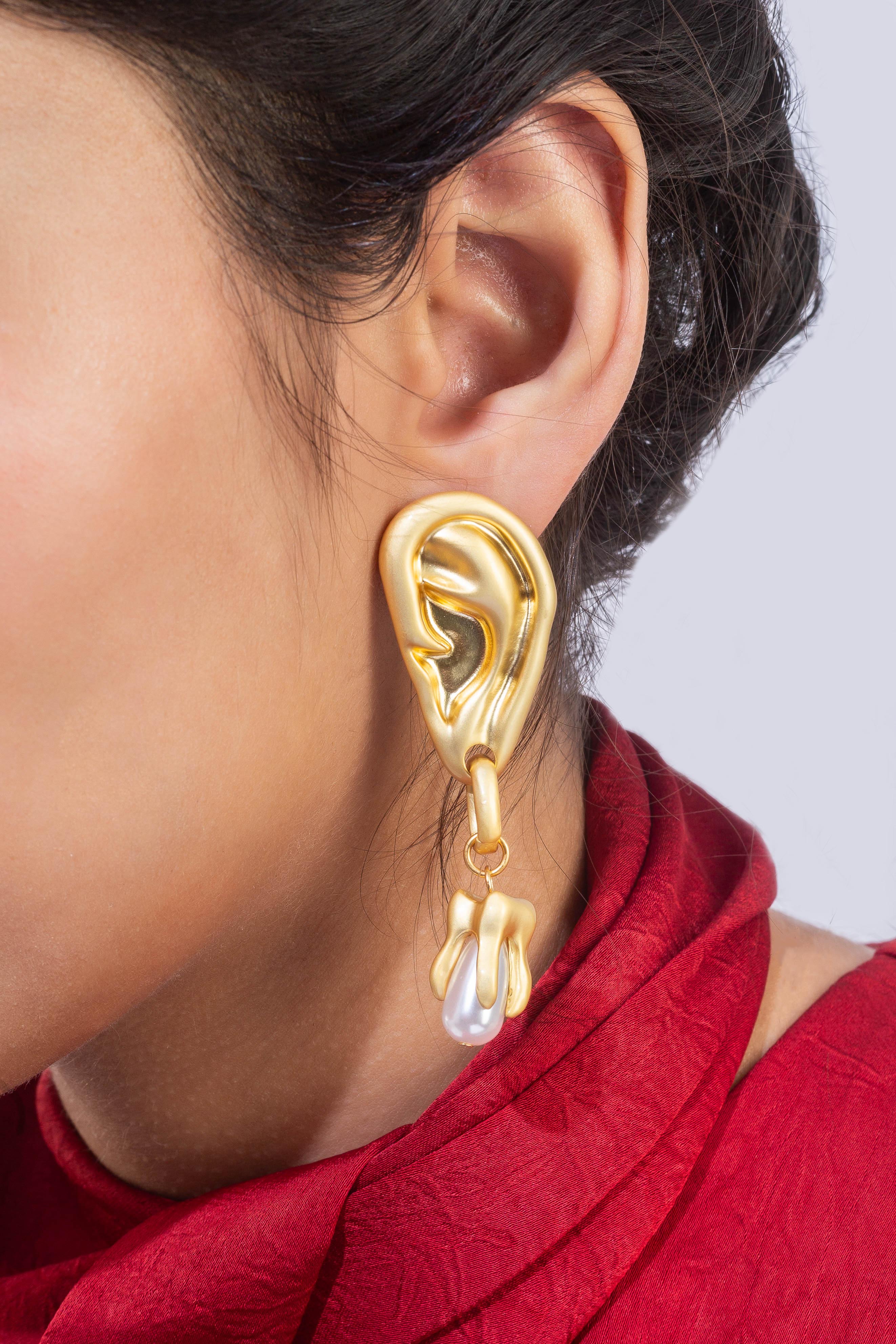 Gold Plated Nose & Ear Shape Earrings for Women with CZ Stones
