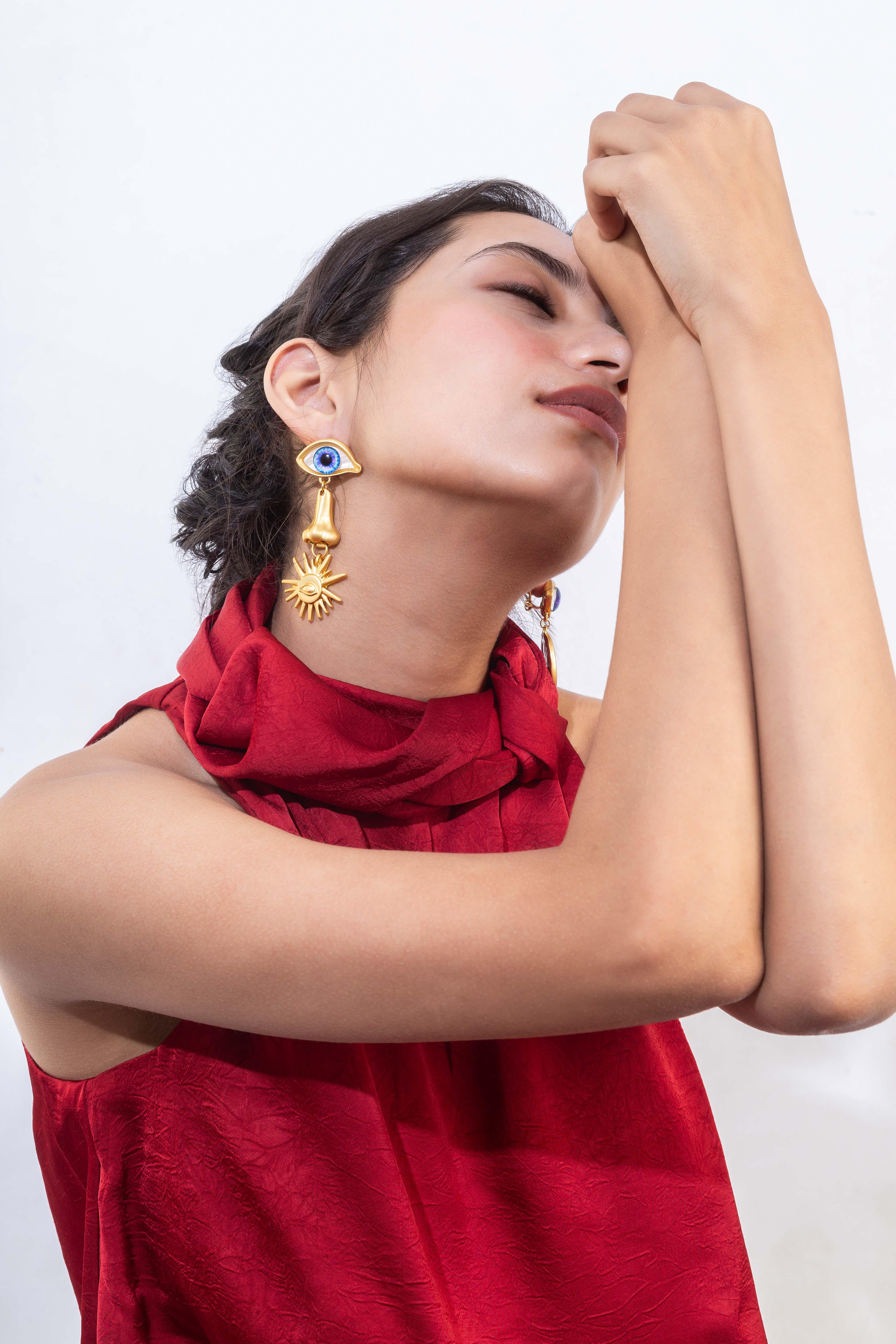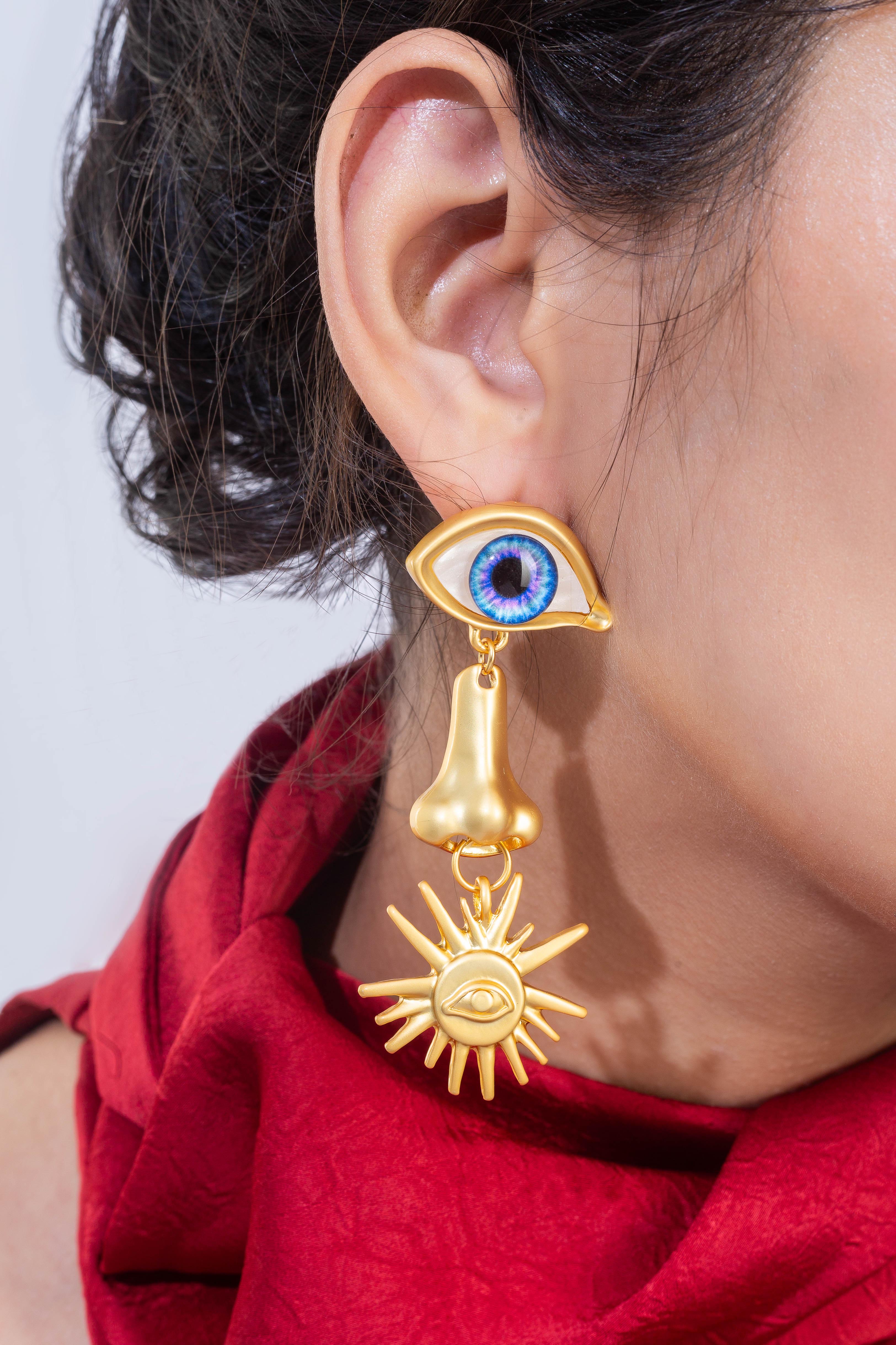 Gold Plated Nose Shape Earrings for Women with Mother of Pearl