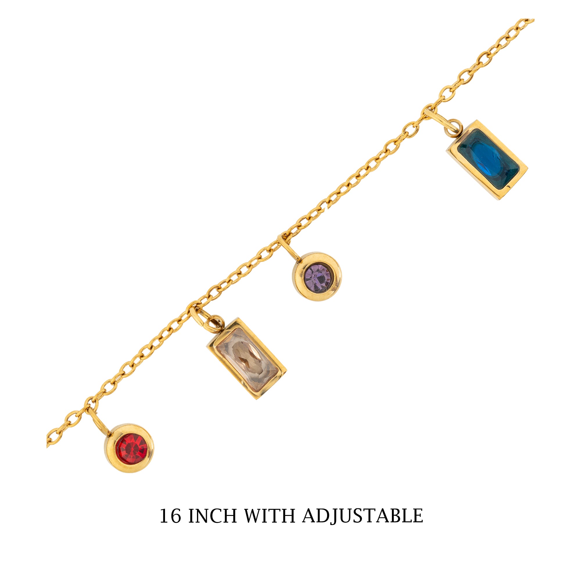 Gold Plated Multi Colour Pendants Chain Necklace with CZ Stones