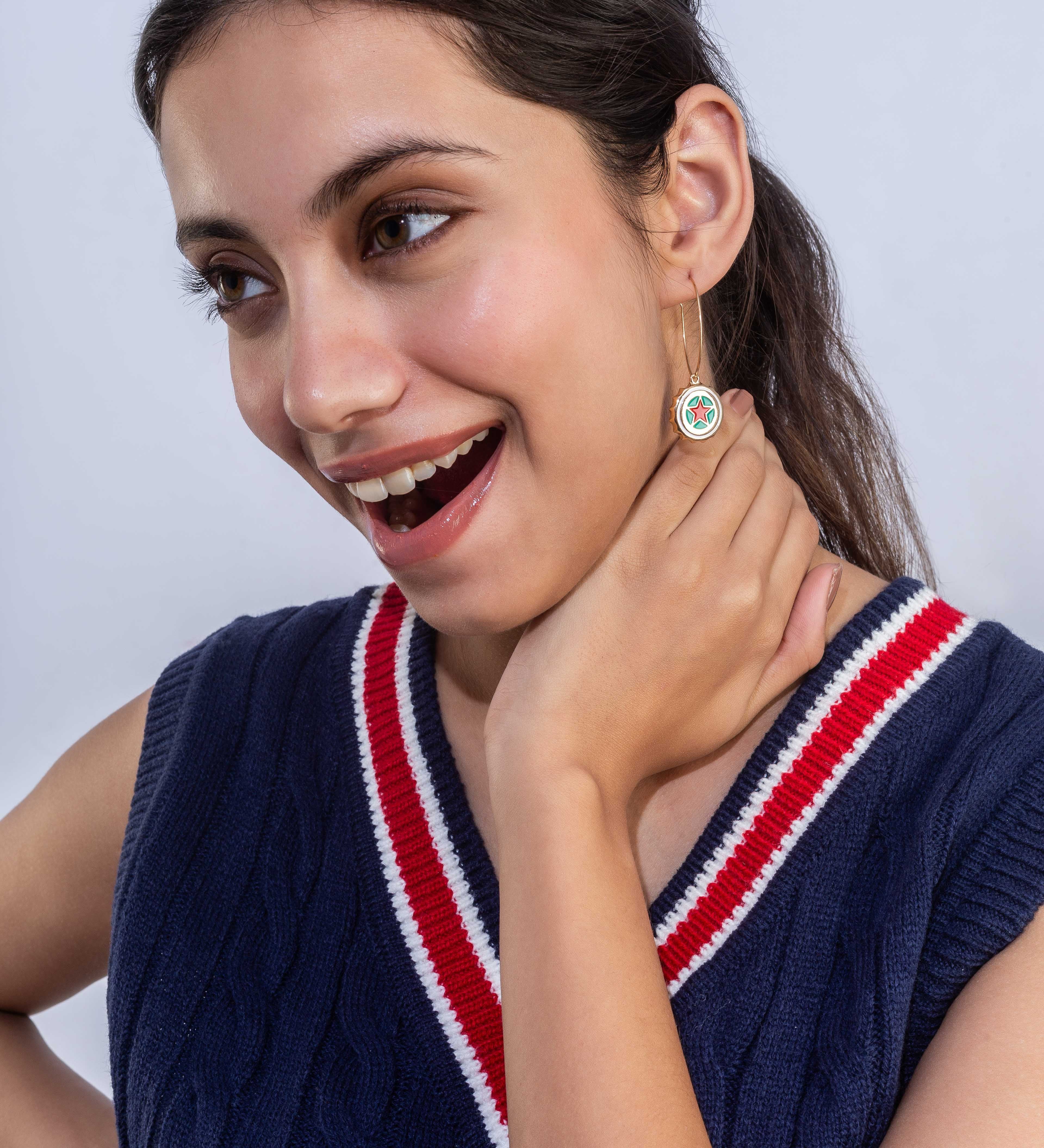 Gold Plated Blue Cake Pastry Dangle Earrings
