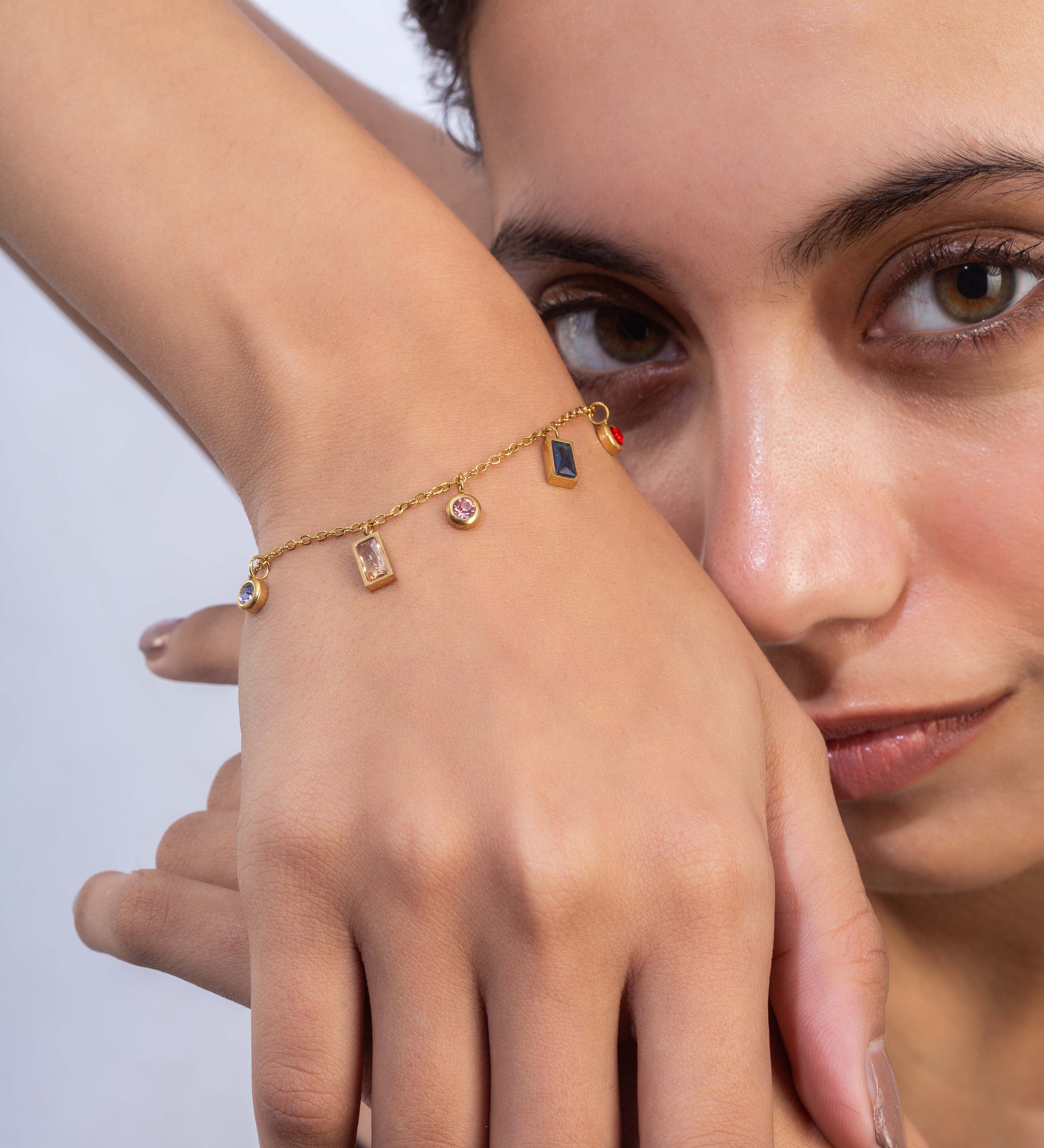 Gold Plated Multi Colour String Bracelet with CZ Stone