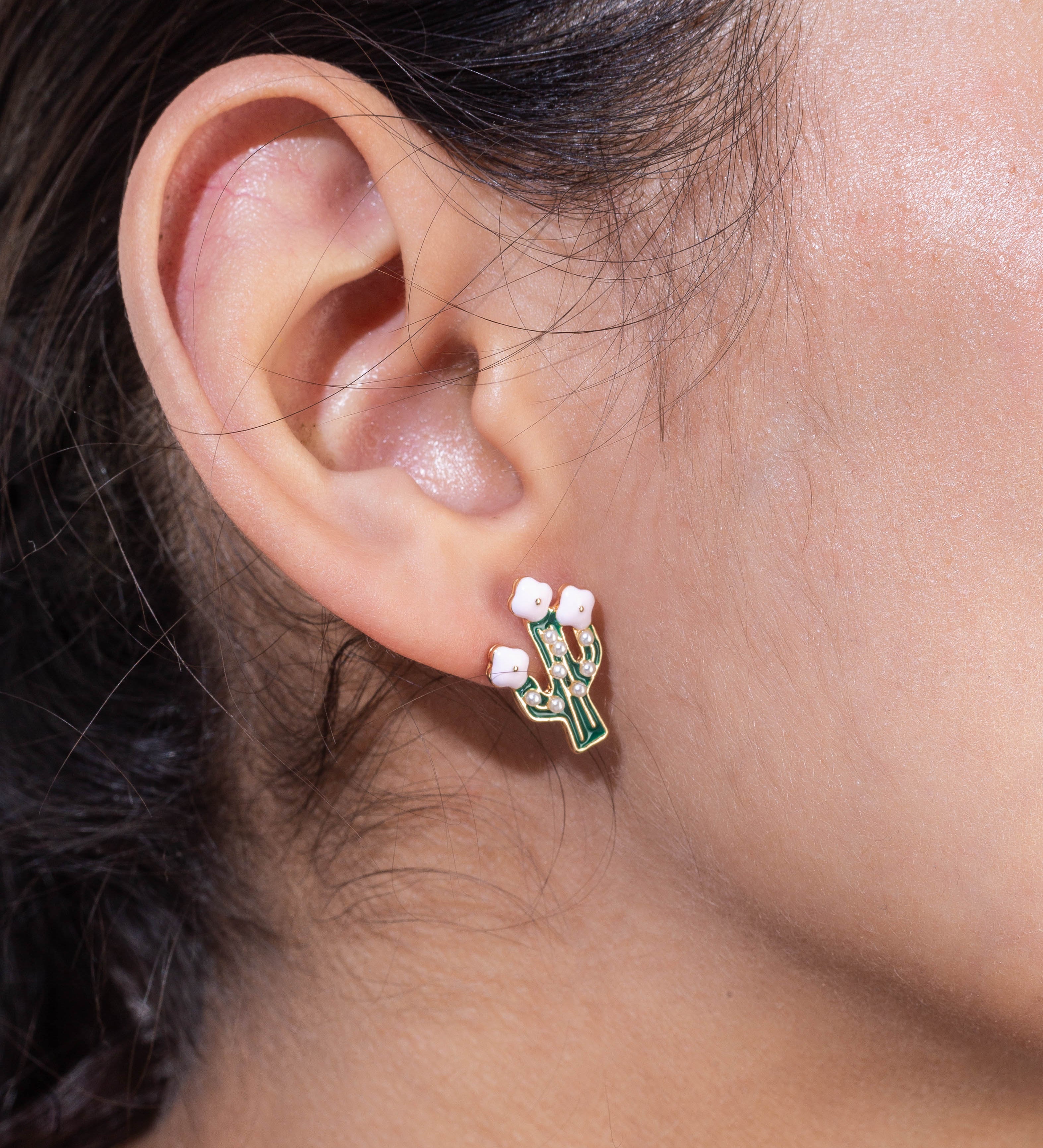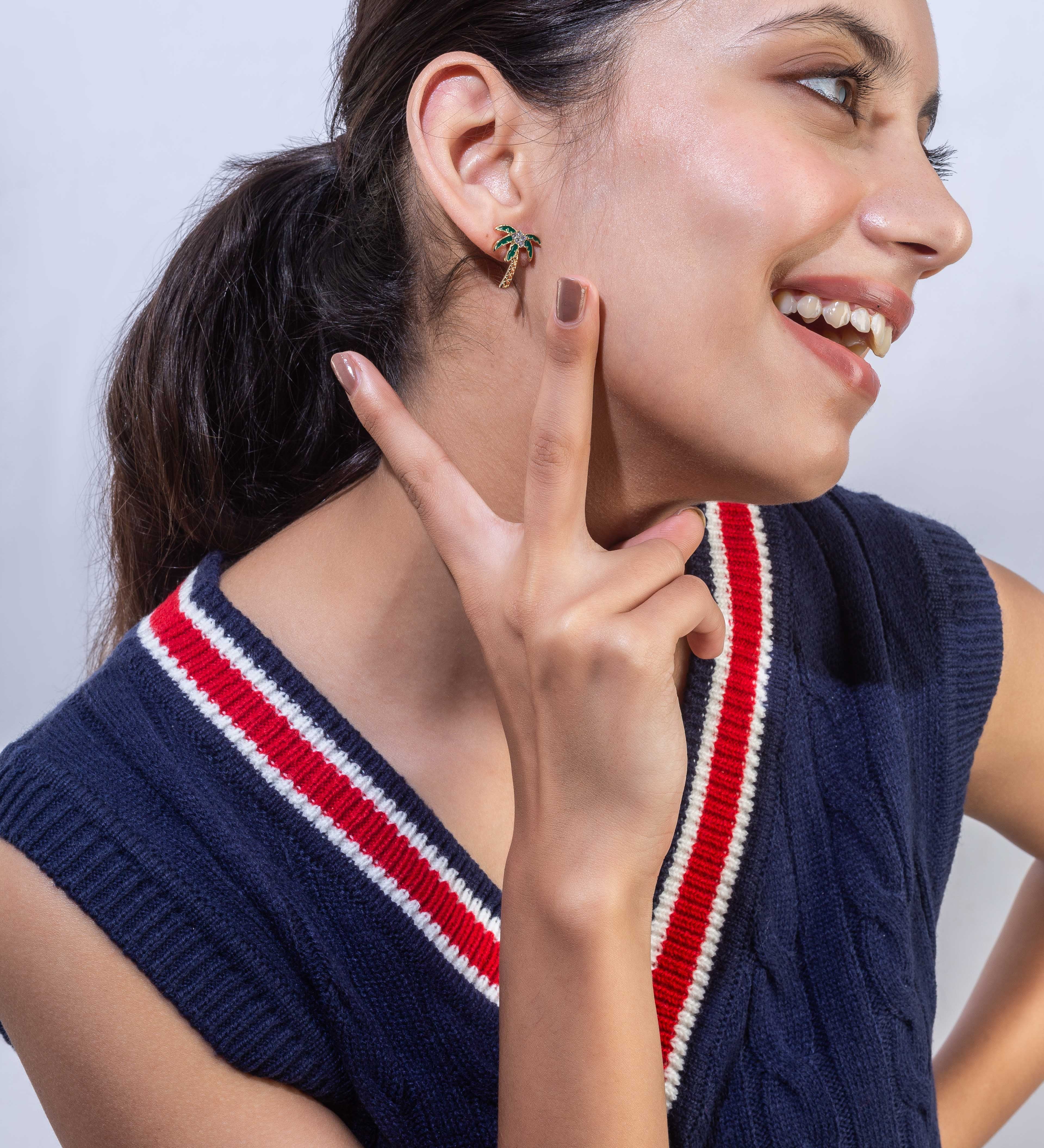 Gold Plated Coconut Tree And Cactus Stud Earrings with CZ Stone