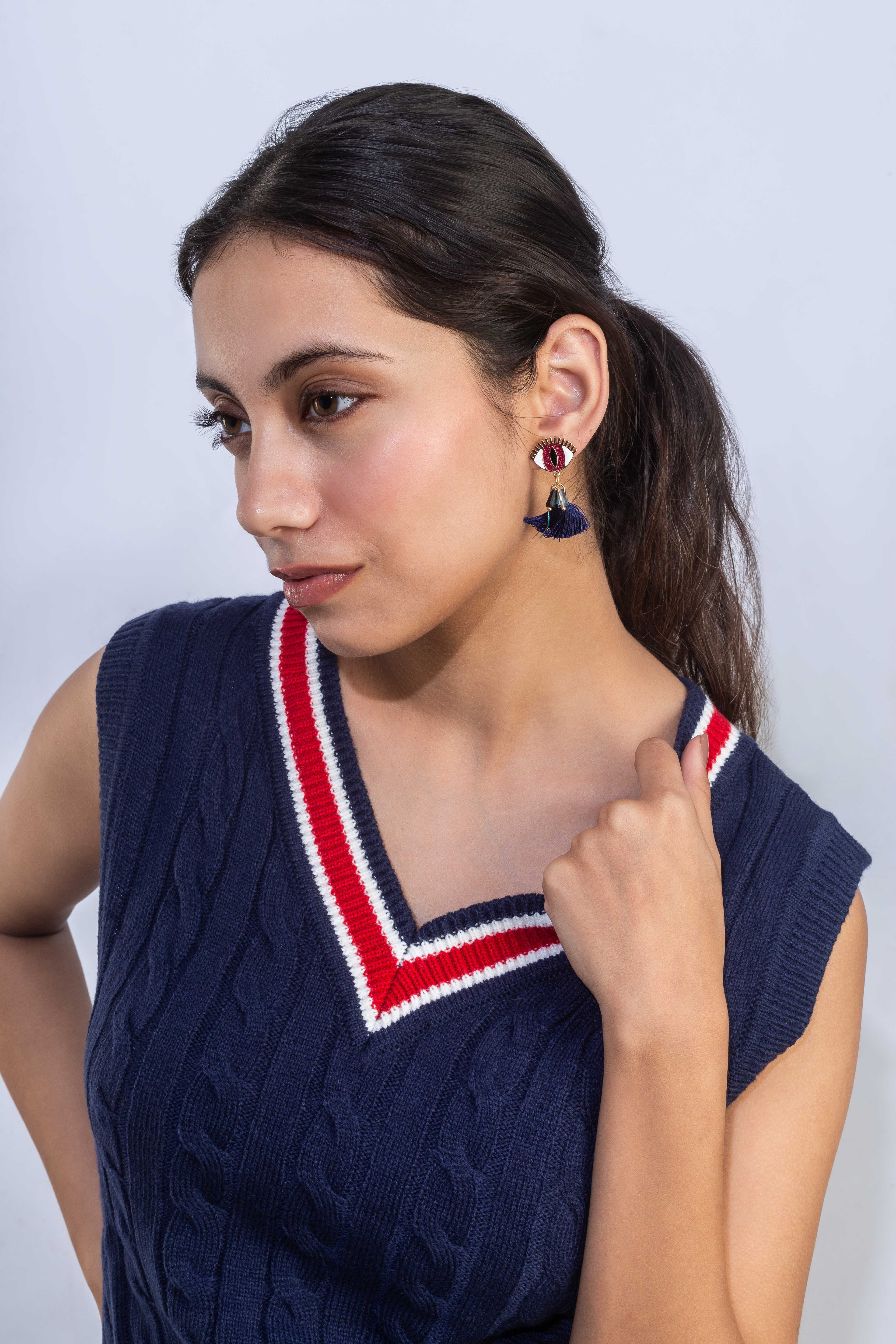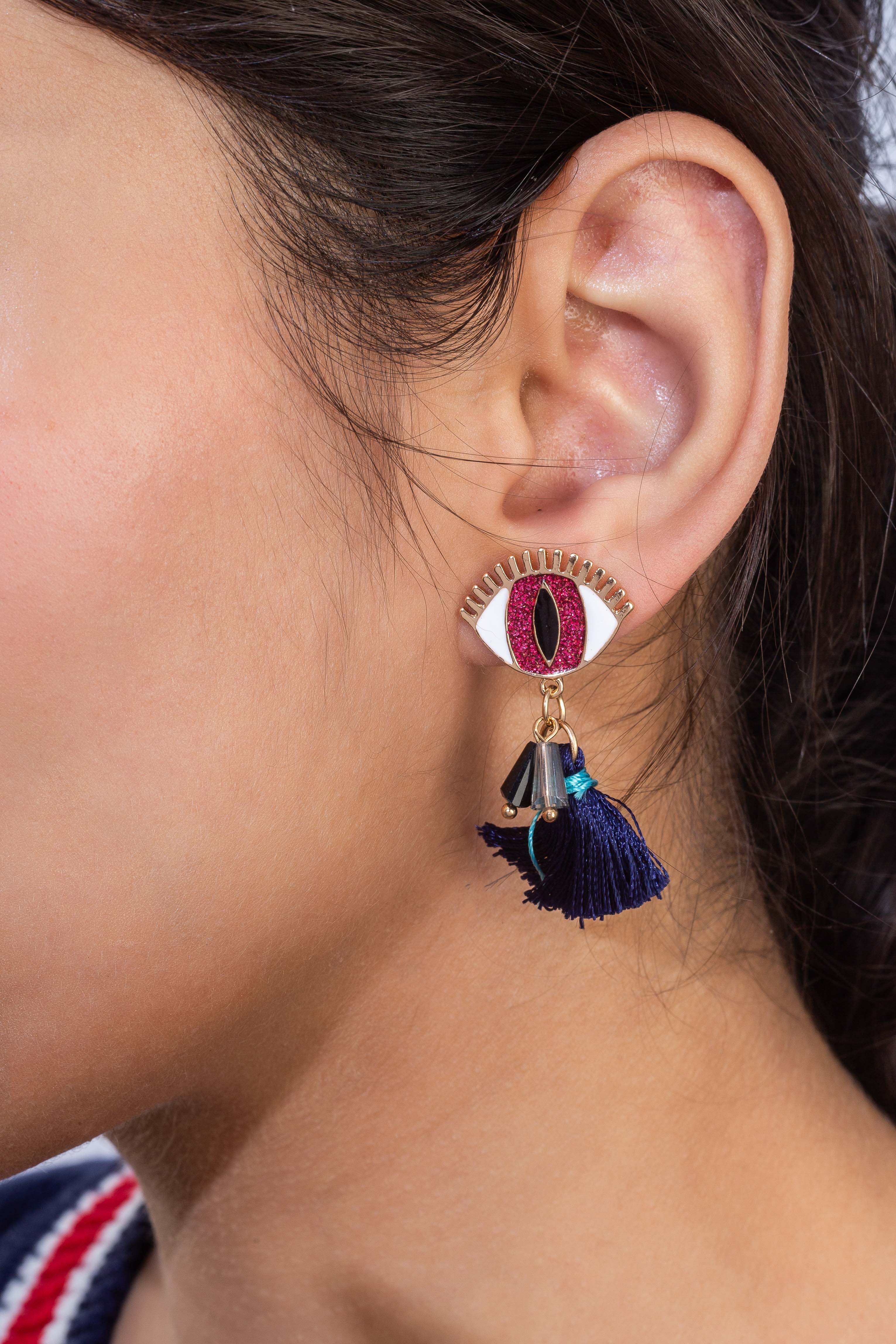 Red & Blue Evil Eye Dangle Earrings
